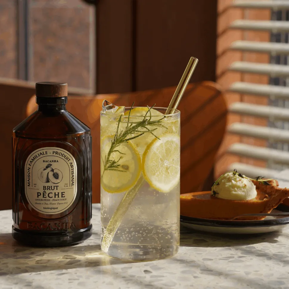 Bacanha’s peach syrup is an aromatic recipe with natural peach extract. Its distinct aroma is subtly fruity with a natural scent.