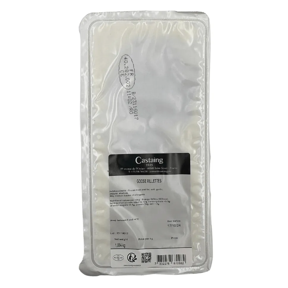 These rich, goose rillettes are made from goose meat enriched with goose fat, garlic, salt, pepper, and shallots and are free of preservatives. The ultimate easy but indulgent pleasure, they are made to a traditional recipe by French producer Castaing, who are famous for their duck and goose products.