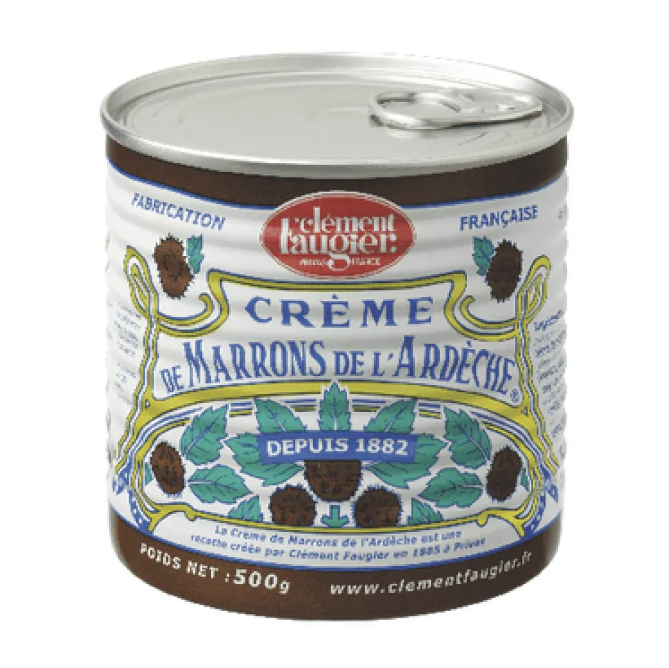 Chestnut Puree is the traditional “Crème de Marrons de l’Ardèche” recipe created by Clément Faugier in 1885 in Privas in France. It can be eaten on its own or added to desserts like pancakes, ice cream or simply spread on toasts. It is also a great baking ingredient in some deserts like the famous Mont Blanc cake.