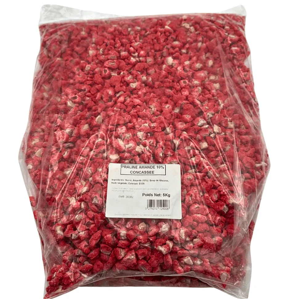 Elevate your desserts with these crushed pink pralines, a French delicacy originating from Lyon and crafted from almonds cooked in pink caramelised sugar. This large 5kg bag is perfect for professional chefs, caterers, and home bakers, these vibrant pralines add a sweet crunch and a pop of colour to a wide range of recipes.