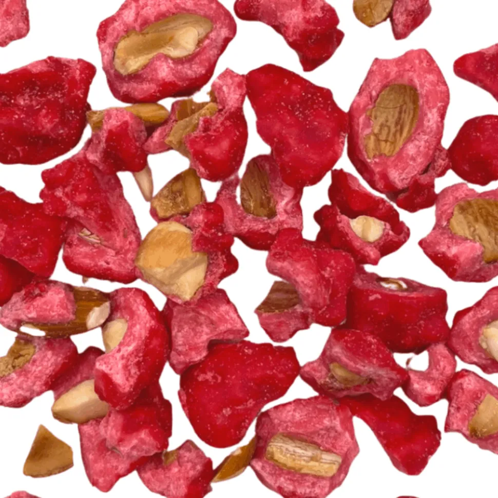 Use crushed pralines to create the iconic Praline Rose tarte from Lyon, a sweet treat with a luscious pink filling. They’re also ideal for brioche, floating island or even cookies lending a delightful sugar-coating crunch and almond flavour to your recipes.