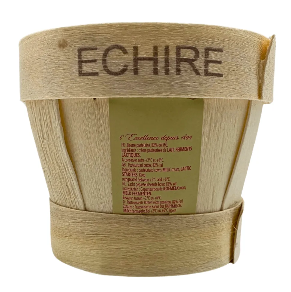 Echire churned unsalted butter has been crafted with exceptional expertise for over 130 years, using a traditional process that ensures its unmatched quality and flavour. Made in the historic Échiré creamery, near Niort, this Charentes-Poitou PDO butter is created through a slow 18-hour maturation of the cream, followed by traditional wooden barrel churning for 2.5 hours.