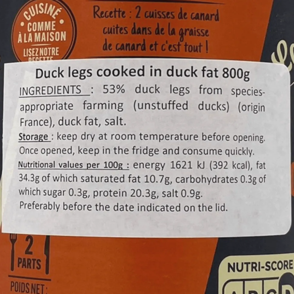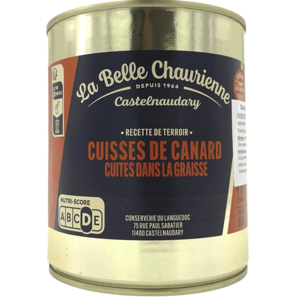 800g tin of non force-fed duck legs from traditional French food manufacturer La Belle Chaurienne.