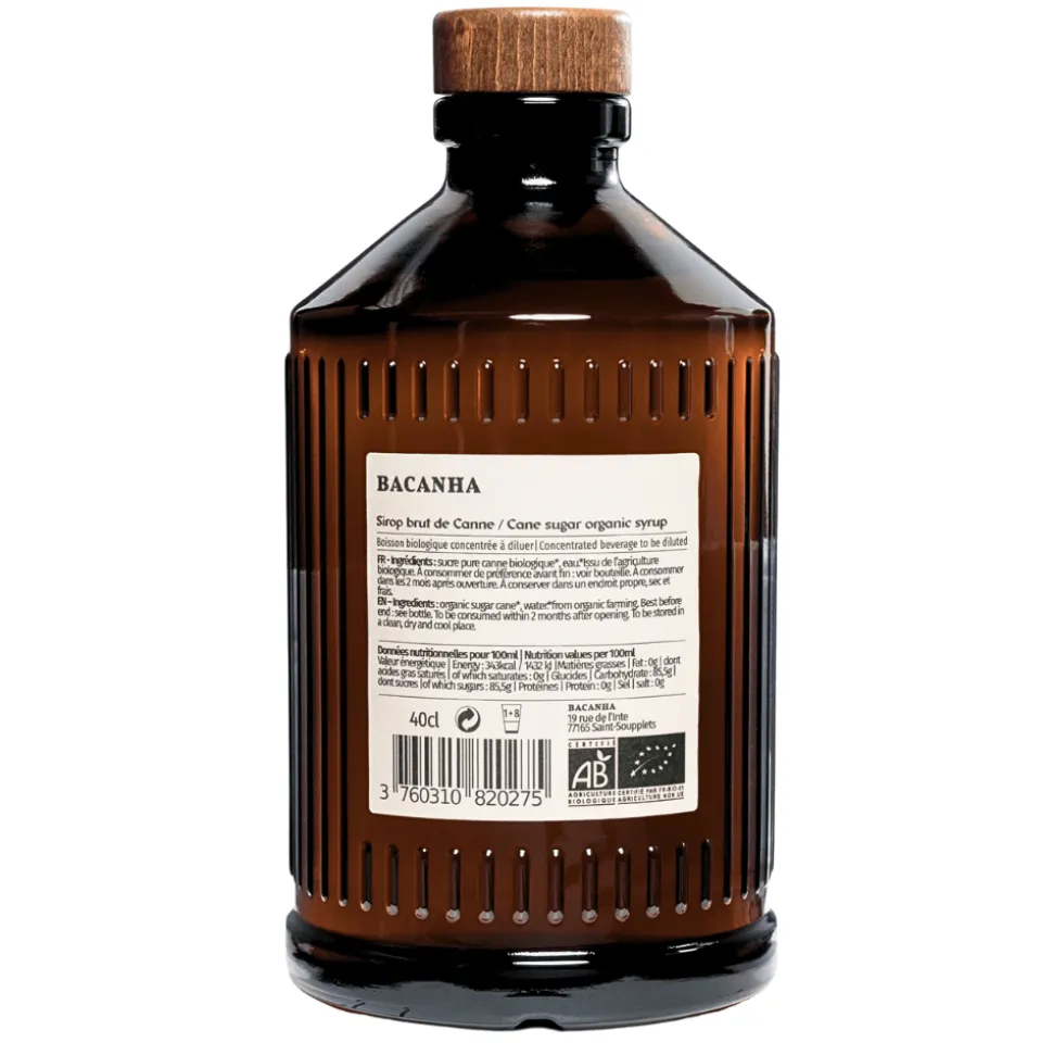 Discover Bacanha cane sugar syrup, natural sweetener handcrafted in France using only pure sugar cane and water. This transparent syrup is a versatile essential for elevating your cocktails, mocktails, and beverages with a natural, clean sweetness.