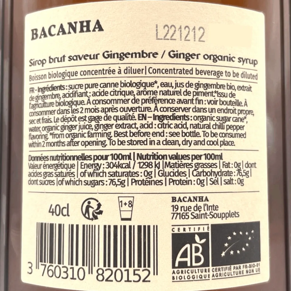 Bacanha’s ginger syrup is made with natural extract. Its peppery aroma is associated with its distinct, exotic, and spicy flavour.