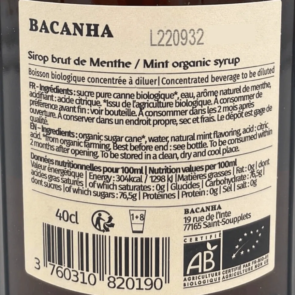 Bacanha’s mint syrup is a refreshing recipe with natural mint extract. Its strong taste and freshness complement the peppery flavour.