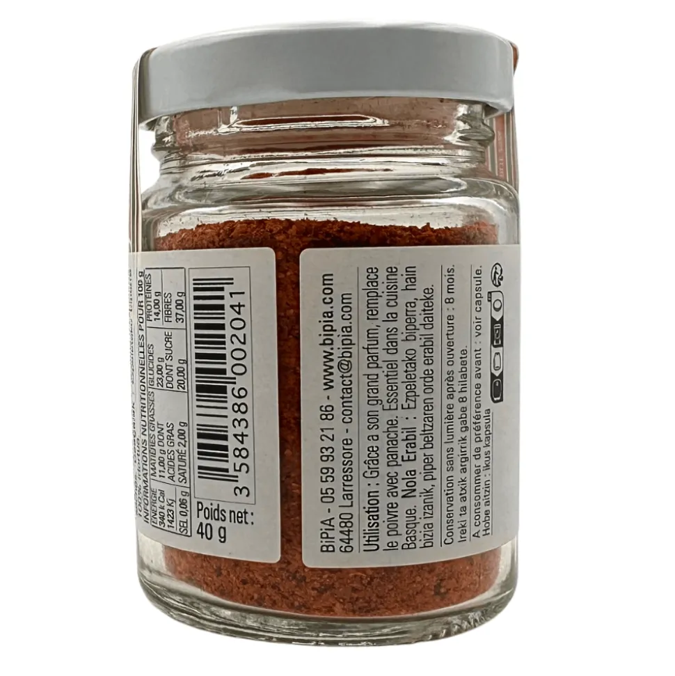 Transform your cooking with BiPia piment d’Espelette, a unique chilli pepper grown exclusively in the Basque region, France. Each pepper is hand-harvested, carefully dried, and finely ground to preserve its vibrant red hue and aromatic depth.