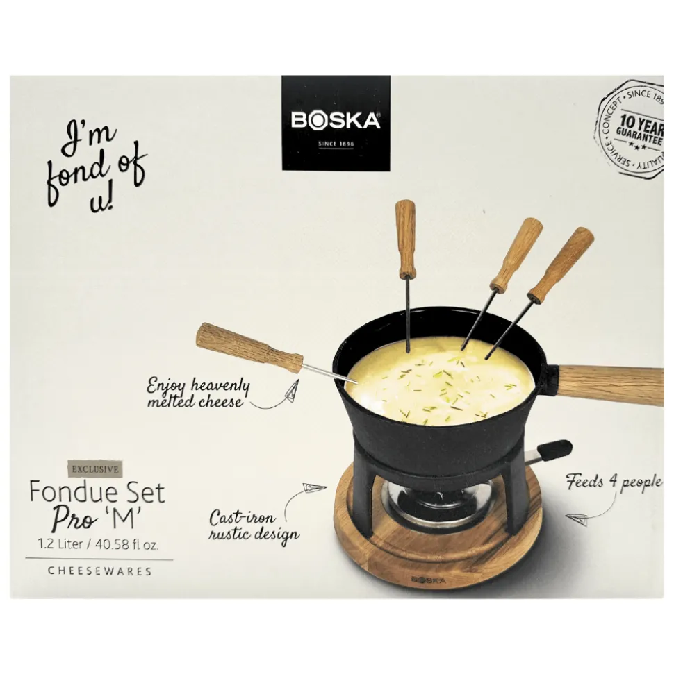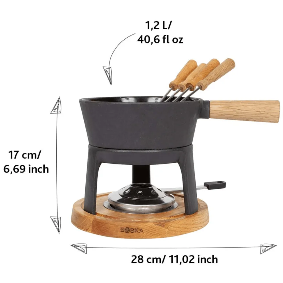 Boska’s Fondue Set Pro – the perfect addition to your hosting essentials. Experience the joy of fondue Savoyarde straight from the French Alps with this 1.2 litre fondue set.
