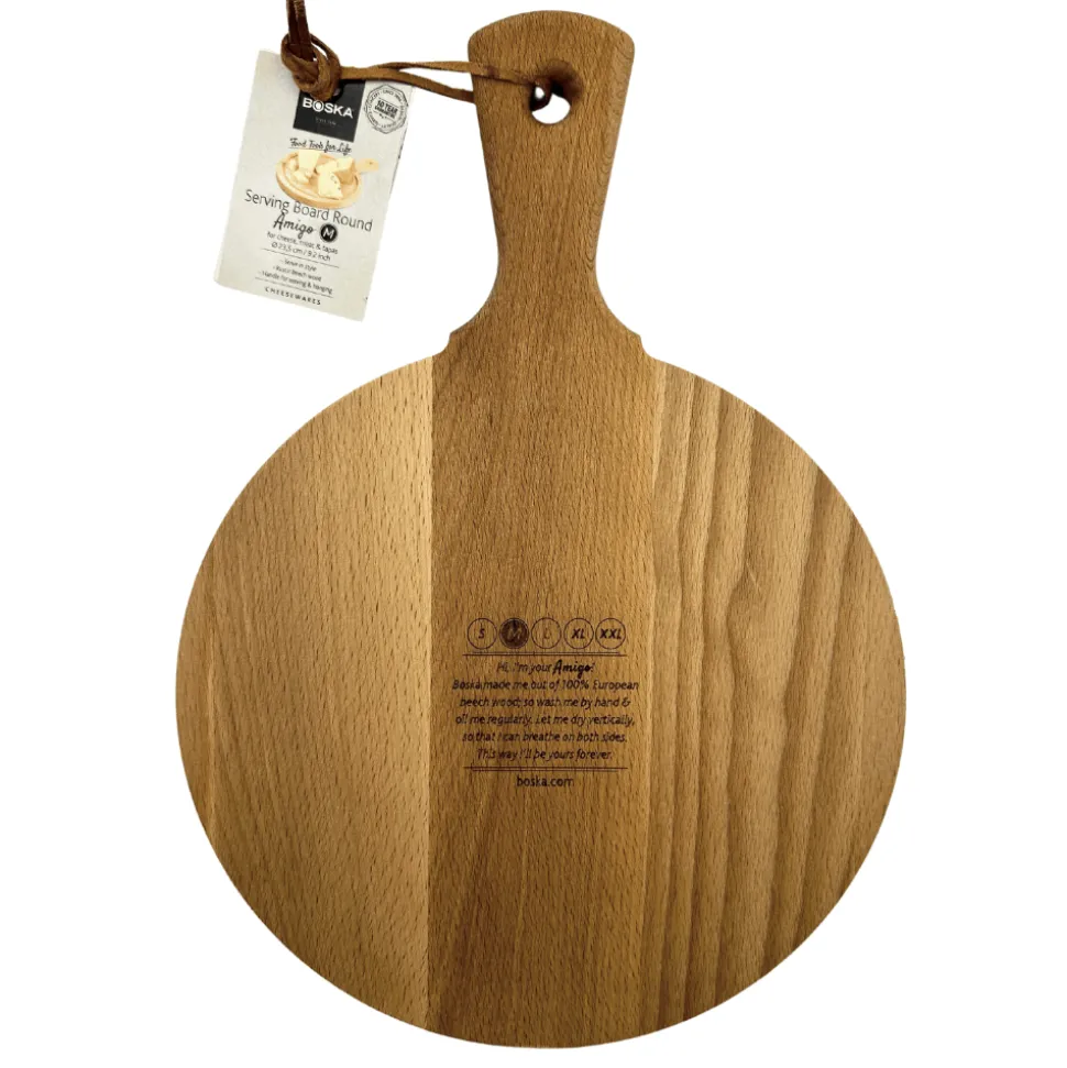 Boska’s round chopping and serving soard Amigo features the perfect combination of style and user friendliness making it a must have for hosting. Display your favourite cheeses and delicacies in a way that is both enticing and practical.