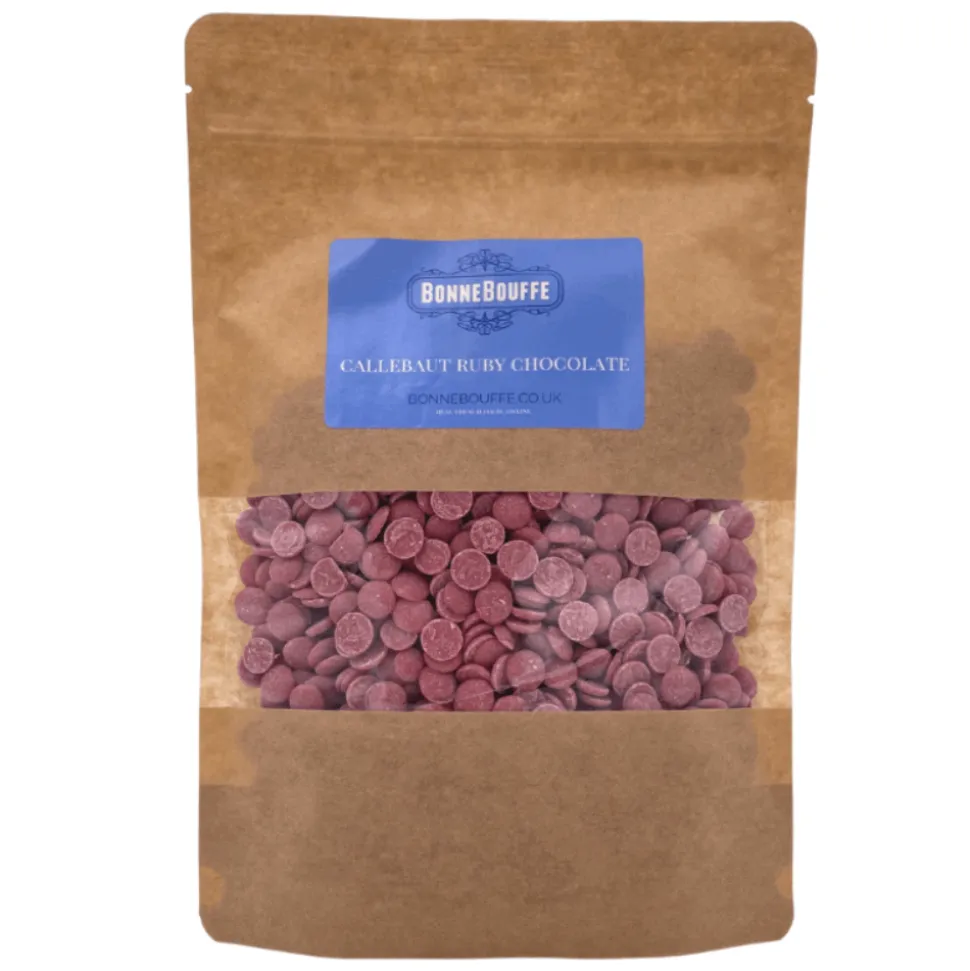 Ruby RB1’s all-around fluidity makes it ideal for a variety of applications ranging from moulding and enrobing to mousses and more. These Callebaut Ruby chocolate chips are also available in larger 2.5kg bag.