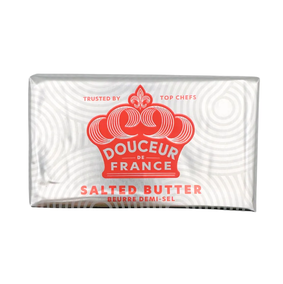 French salted butter Douceur de France from French company Candia with a fat content of 80%.