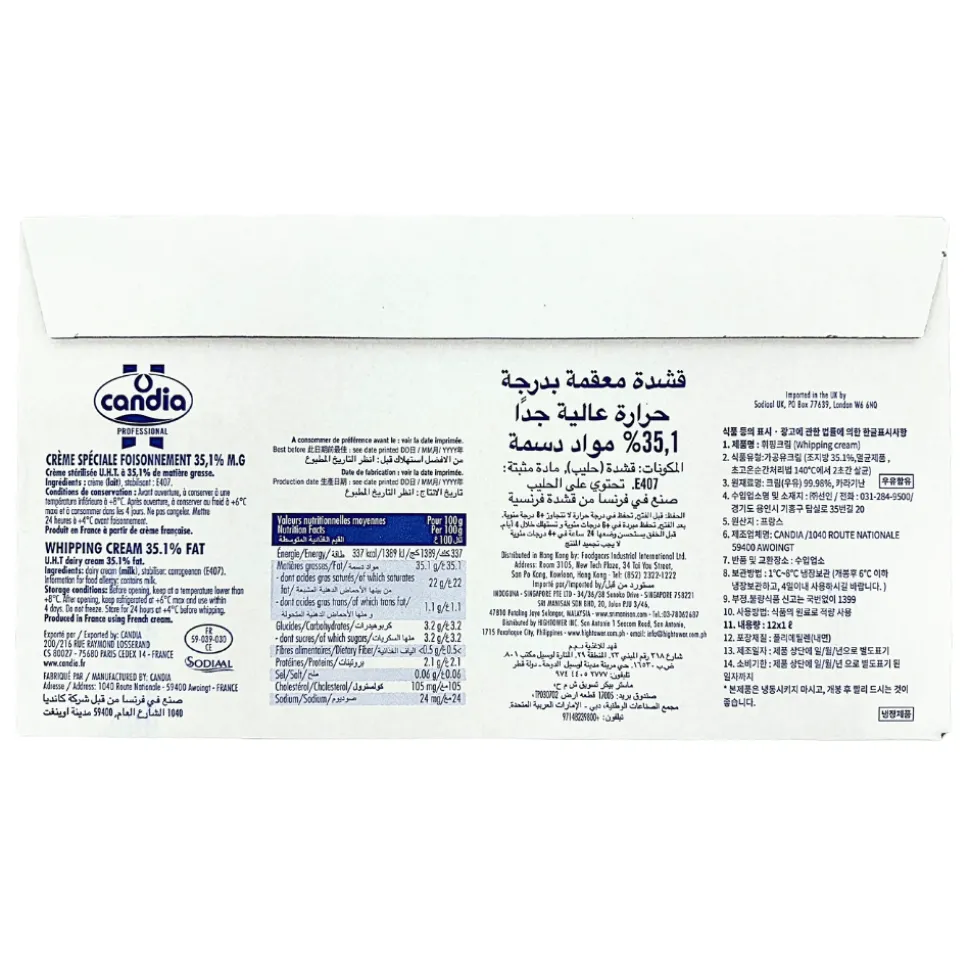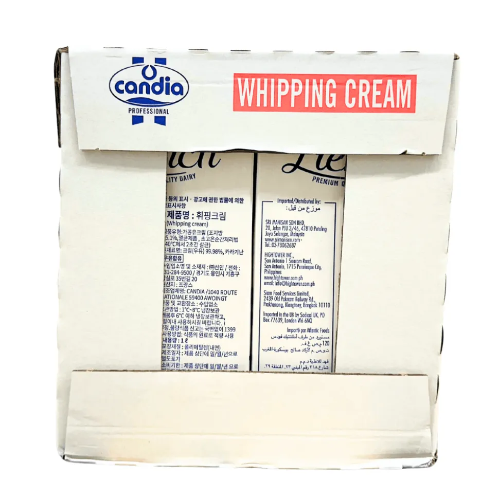 UHT whipping cream by Candia is a versatile product with a 35% fat content, perfect for whipping, cooking, and pouring. Whether you’re baking, making Chantilly cream, whipping up creme brulee, or adding a creamy touch to quiche, this cream is your go-to. This listing is for 12 x 1 litre cartons of whipping cream.