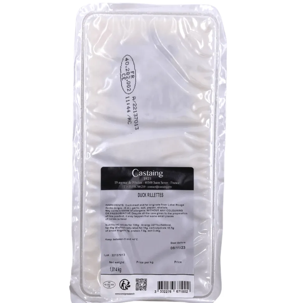 These rich, soft duck rillettes are made from pure confit duck meat enriched with garlic, salt, pepper and shallots. The ultimate easy but indulgent pleasure, they are made to a traditional recipe by French producer Castaing, who are famous for their duck and goose products.