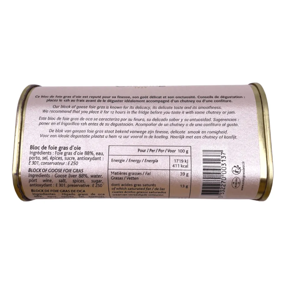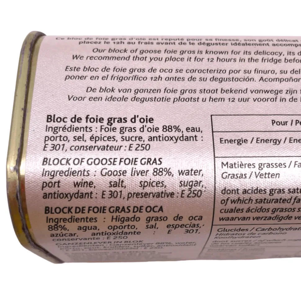 Ingredients: goose foie gras 88%, water, port wine, salt, spices, sugar, antioxidant: sodium ascorbate, preservative: sodium nitrite.