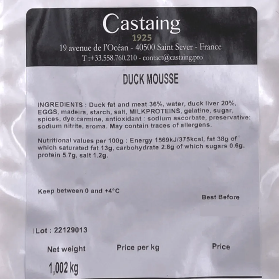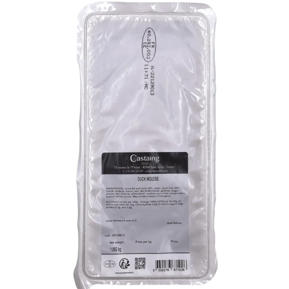 Rich, fine and smooth, this pure duck mousse from French producer Castaing is a true delight for the palate.