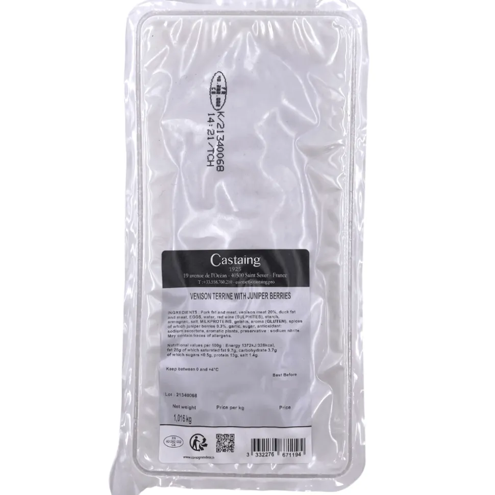 The distinctive and fragrant taste of juniper berry is a classic accompaniment to game. This delicious, rich terrine from historic French producer Castaing combines venison, pork and juniper. The resulting deep and complex flavour is bound to appeal to anyone who loves the traditional cuisine of the South of France.