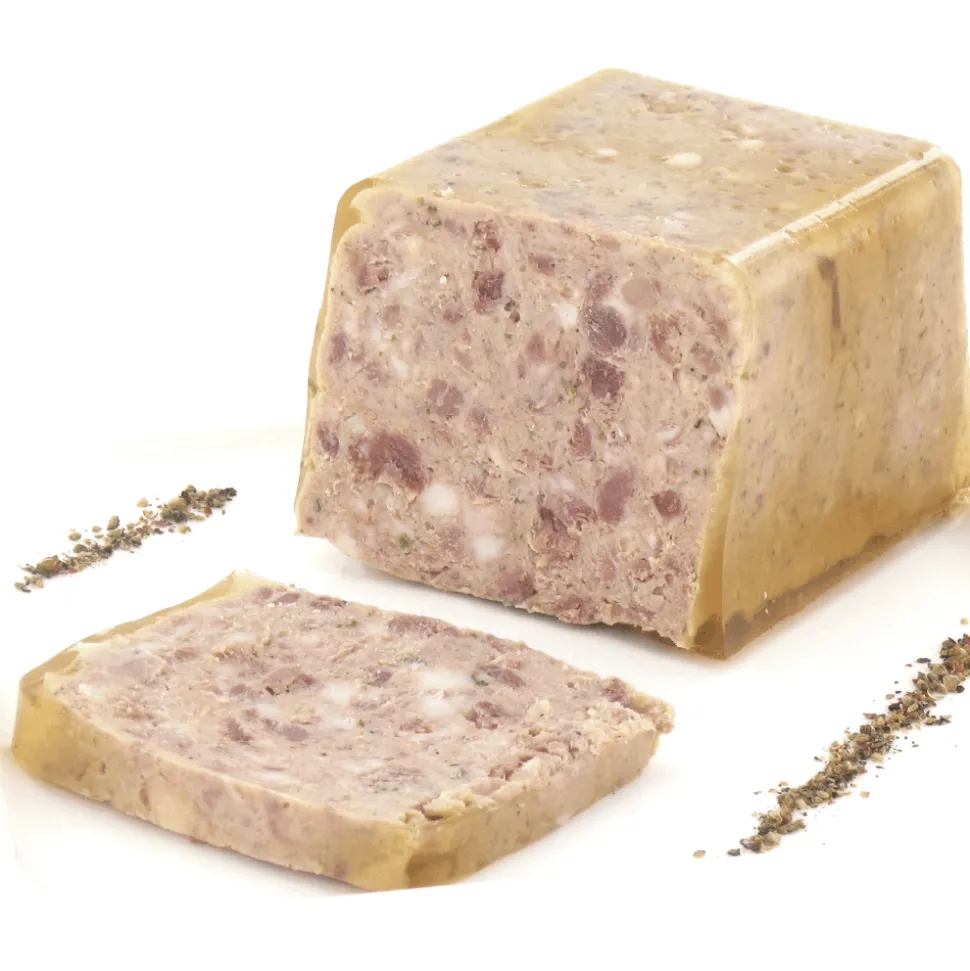 Ingredients: Pork fat and meat, wilboard meat 20%, duck fat, EGGS, water, white wine (SUPLHITES) pork liver, starch, armagnac, salt, MILK PROTEINS, onions, gelatine, aroma (GLUTEN), herbs (including sage 0.3%), spices (including 5 berries 0.1%), garlic, sugar, antioxidant: sodium ascorbate, preservative: sodium nitrate. May contain traces of allergens.