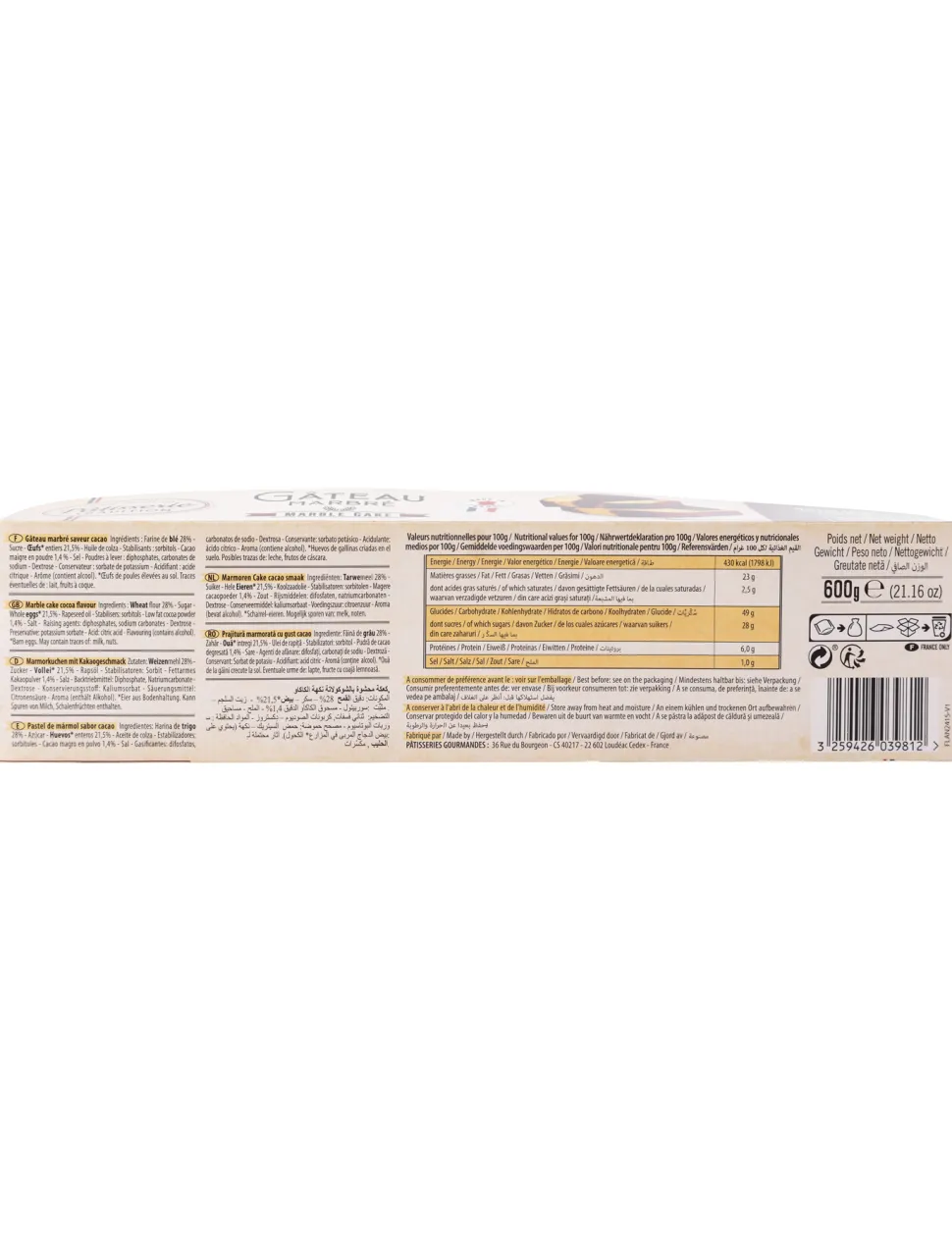 Chocolate Marble Cake 600g. Traditional chocolate long marble cake recipe from Brittany. Great for snack or afternoon tea.