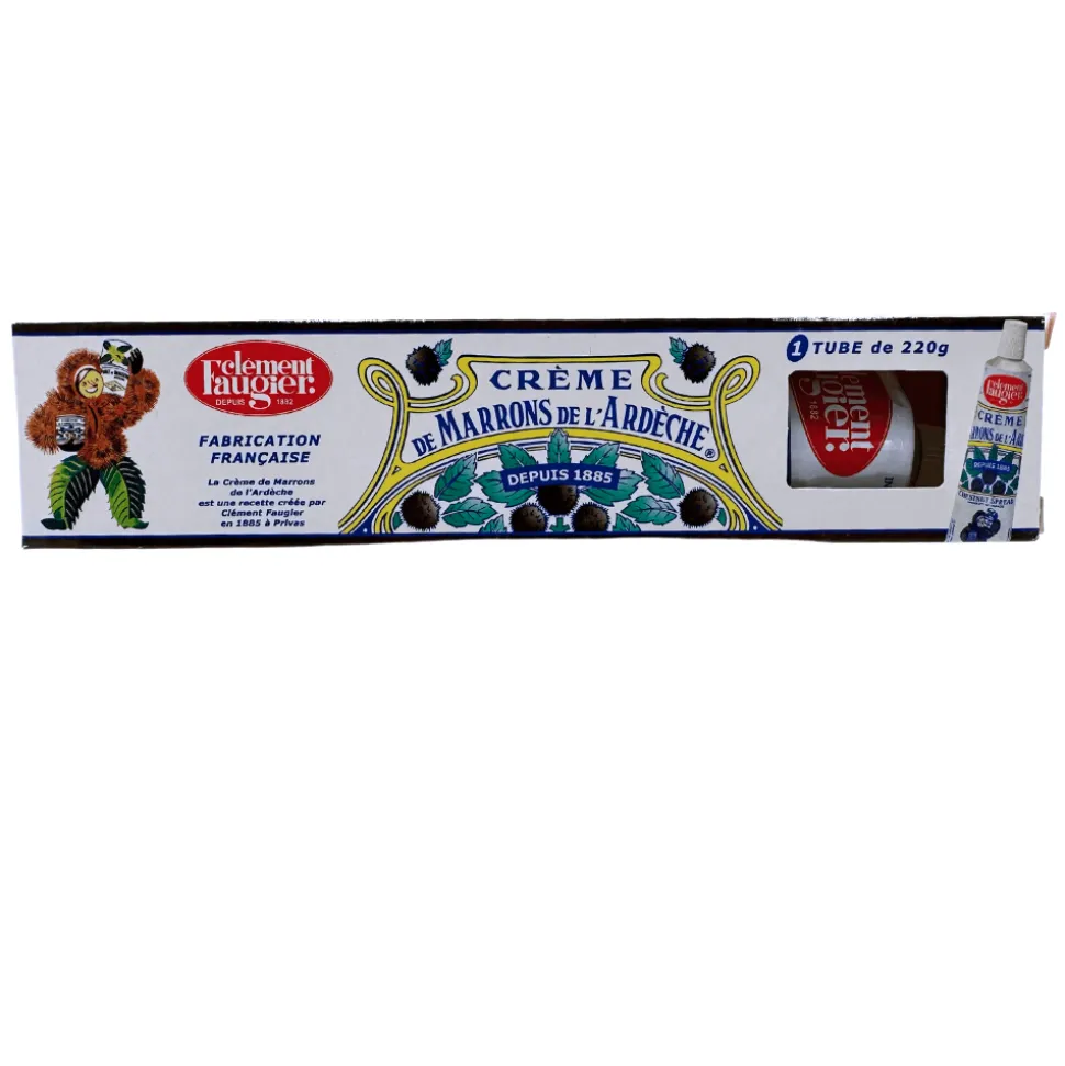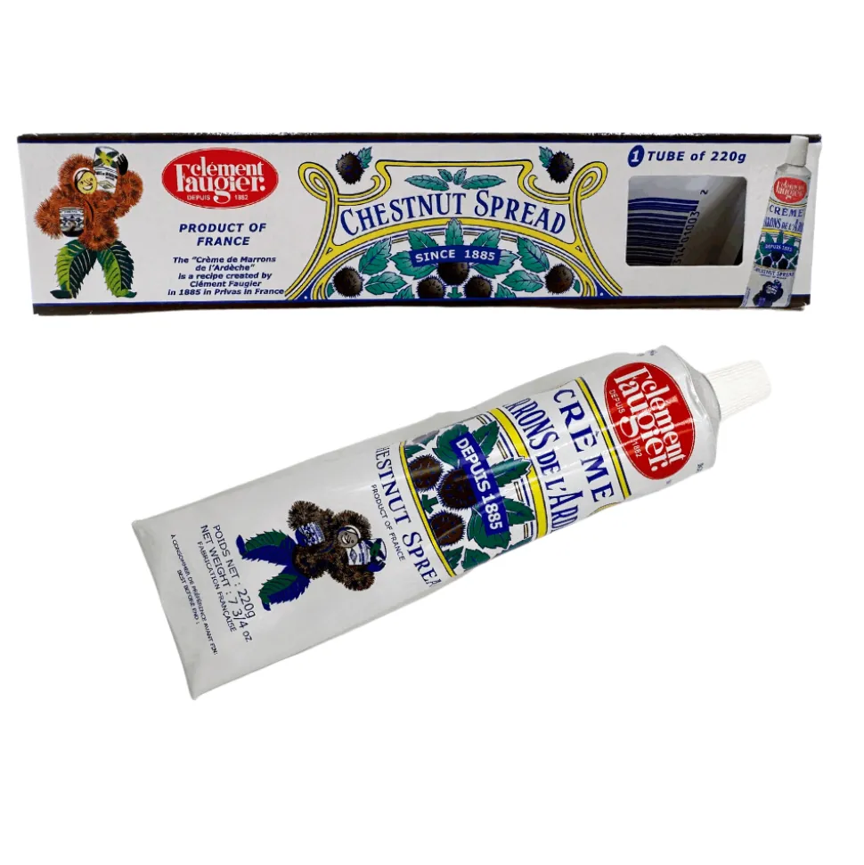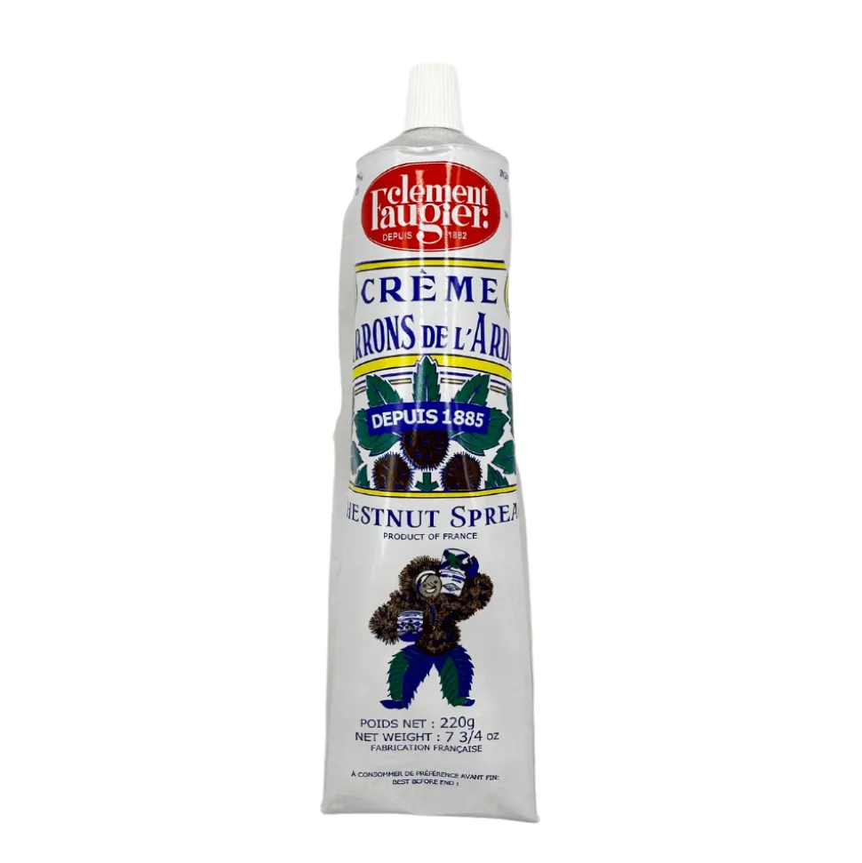 Chestnut spread is the traditional “Crème de Marrons de l’Ardèche” recipe created by Clément Faugier in 1885 in Privas in France. It can be eaten on its own or added to desserts like pancakes, ice cream, or simply spread on toast. It is also a great baking ingredient in some desserts like the famous Mont Blanc cake.