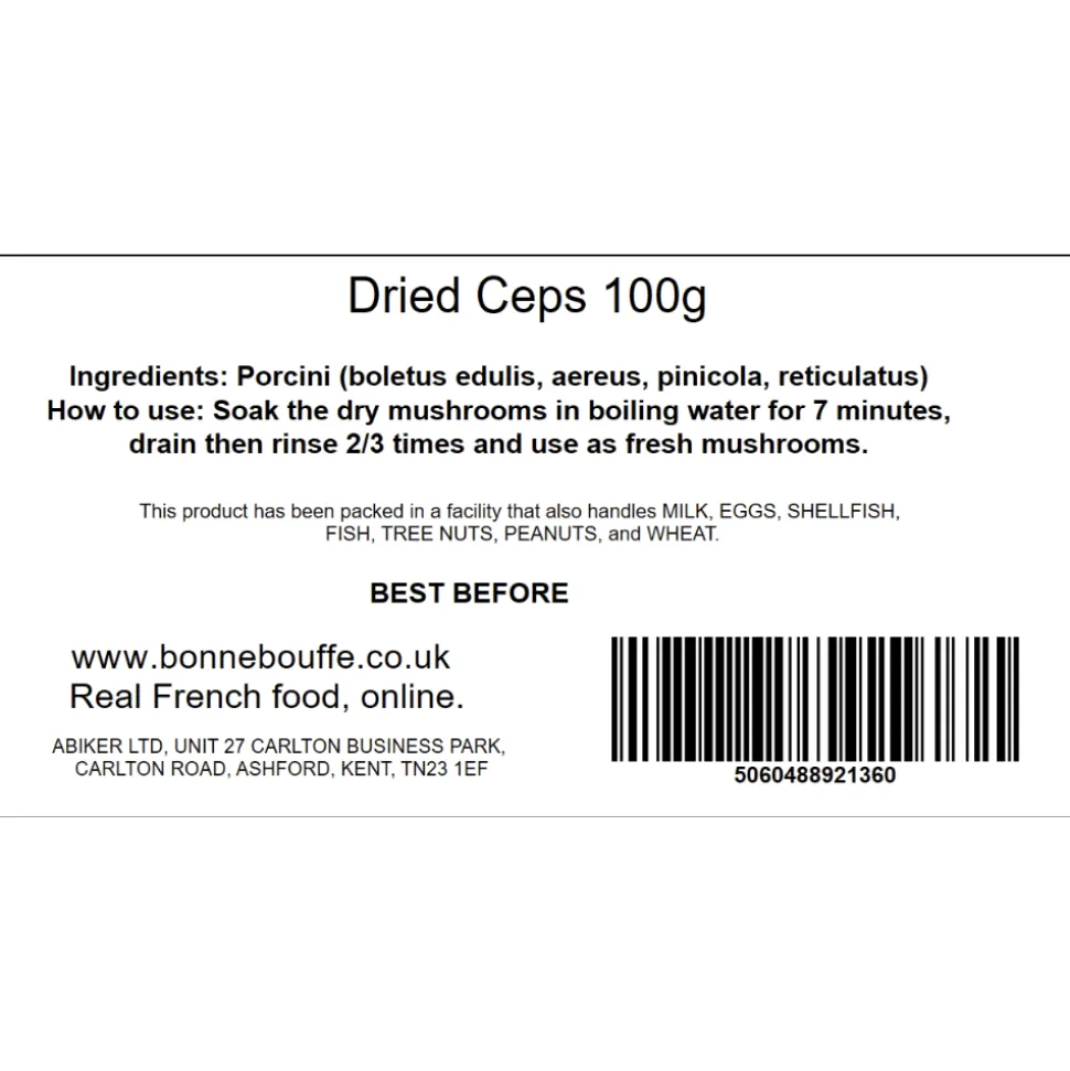 Dry ceps mushroom 100g resealable bag. Use dried mushrooms to add a quick, umami, earthy flavour to many dishes like risotto, broths, pasta…Soak the dry mushrooms in boiling water for 7 minutes, drain then rinse 2 or 3 times and use as fresh mushrooms.