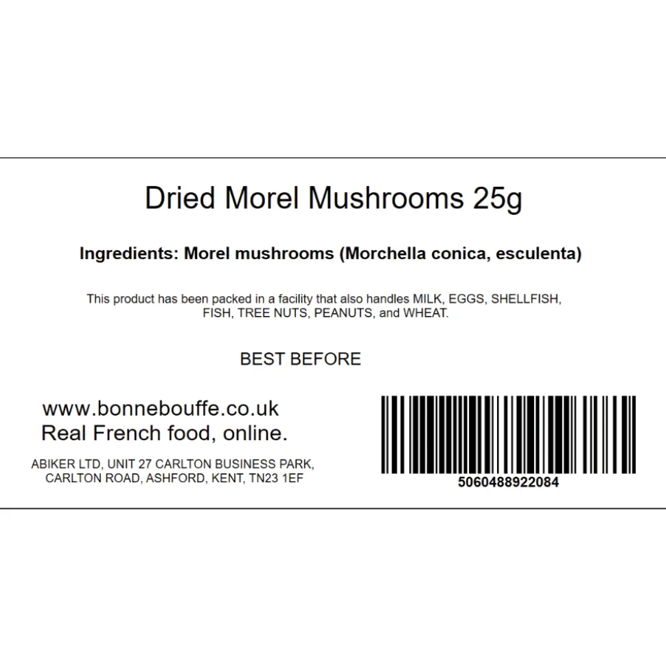 Dry morels mushroom 25g resealable bag (contains stalks as well as morels of varying sizes). Use dried mushrooms to add a quick, umami, earthy flavour to many dishes like risotto, broths, pasta…Soak the dry mushrooms in boiling water for 7 minutes, drain then rinse 2 or 3 times and use as fresh mushrooms.