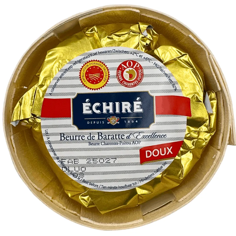 Echire churned unsalted butter has been crafted with exceptional expertise for over 130 years, using a traditional process that ensures its unmatched quality and flavour. Made in the historic Échiré creamery, near Niort, this Charentes-Poitou PDO butter is created through a slow 18-hour maturation of the cream, followed by traditional wooden barrel churning for 2.5 hours.