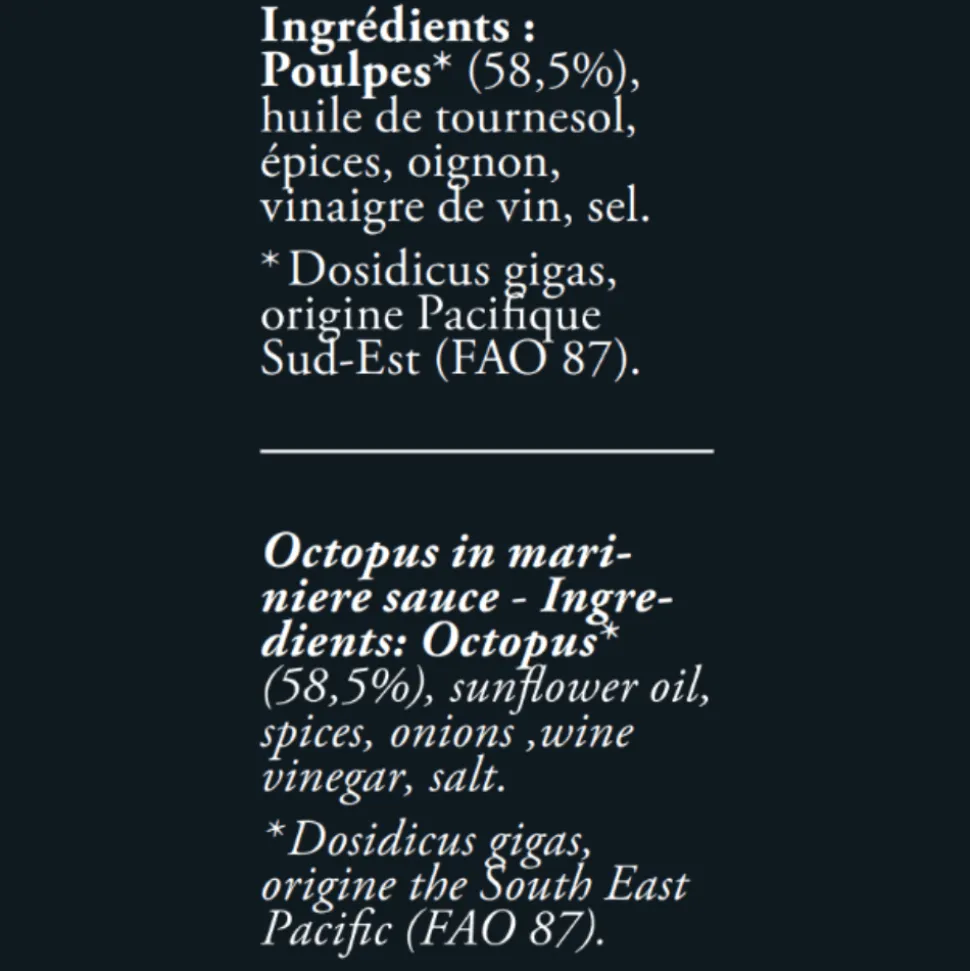 A twist on a familiar recipe, Ederki poulpes à la marinière is a tapas dish using octopus instead of mussels sitting in white wine sauce. Once open, keep refrigerated and consume within 24 hours.