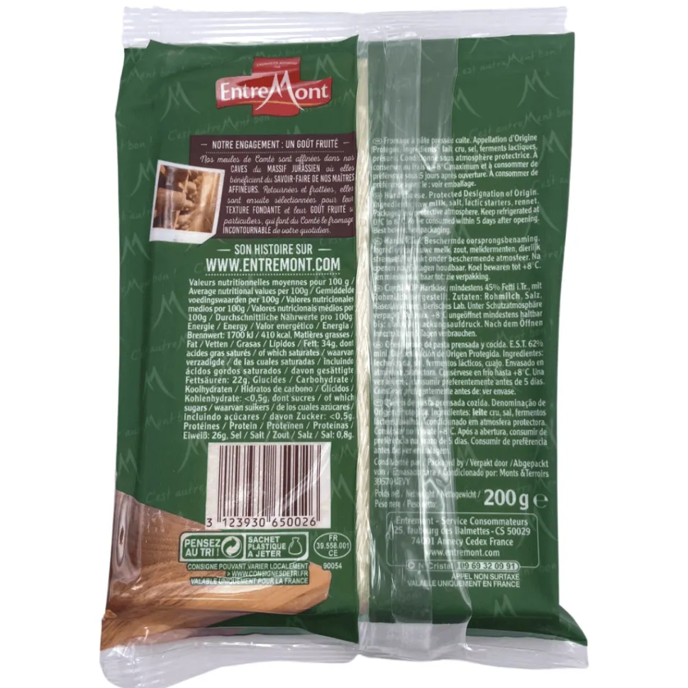 Weighing 200g, this block of Comté cheese is suitable for freezing.