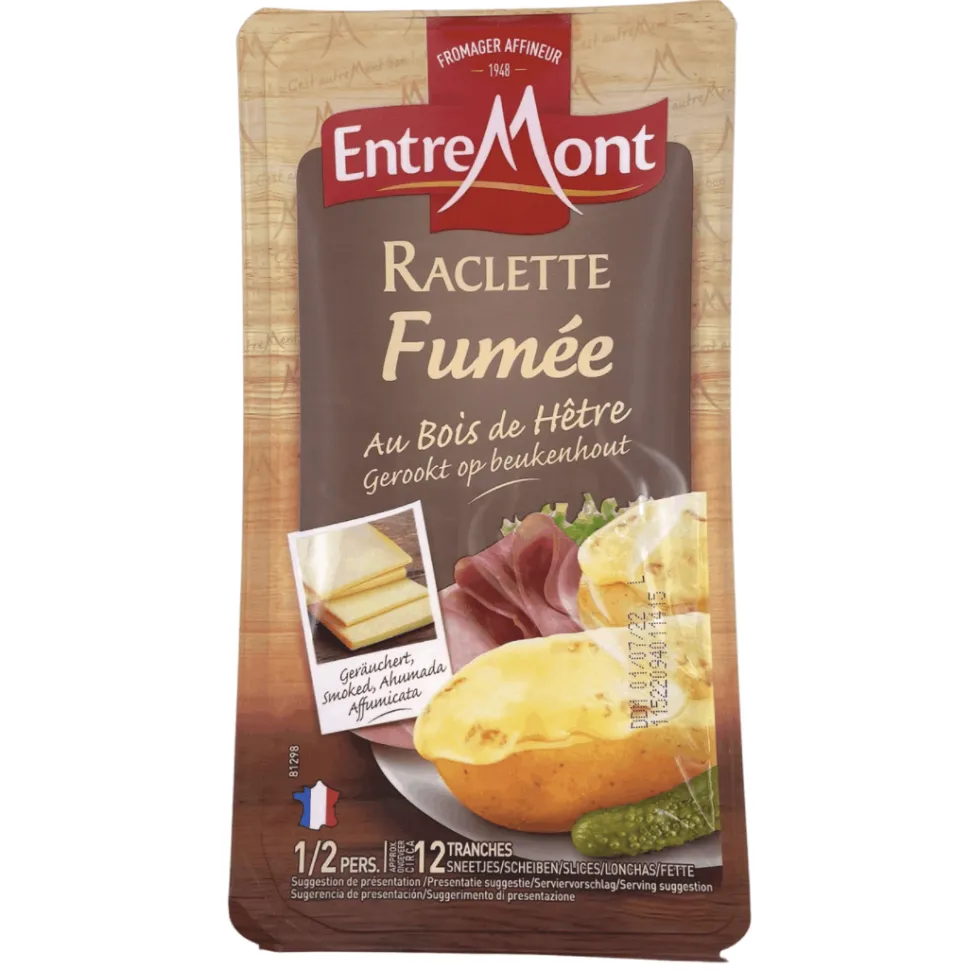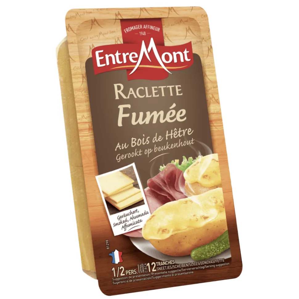This fine smoked raclette is a tasty variant of the traditional Alpine cheese. Hearty and rich, raclette is quite literally made to be melted. And it’s never been easier with these handy pre-packed slices from Entremont.