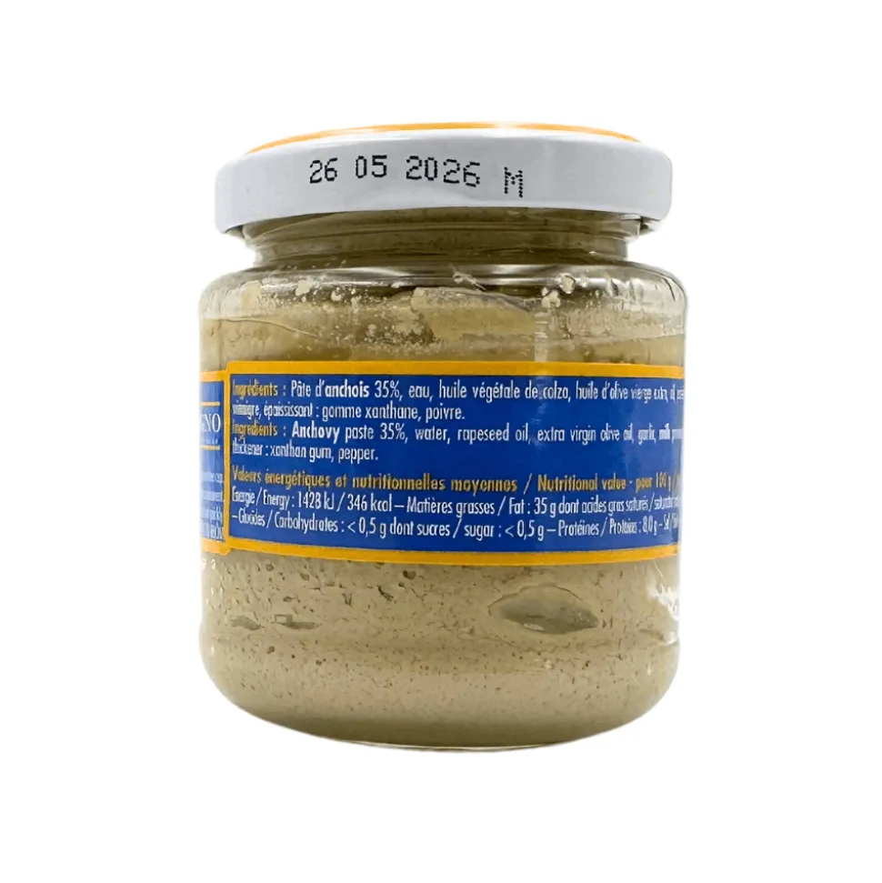 This Anchoiade mousse is from the sunny Provence region of France. Anchoiade is a savoury condiment that encapsulates the Mediterranean’s vibrant flavors: anchovies, garlic and extra virgin olive oil are expertly blended to create this aromatic delight. The result is a luscious, umami-rich paste that’s as versatile as it is delectable. This anchoiade mousse serves as an exceptional dip or spread elevating everything from fresh baguettes to grilled vegetables, and seafood. Its bold and briny character adds depth to dishes, offering a taste of southern France’s culinary tradition.