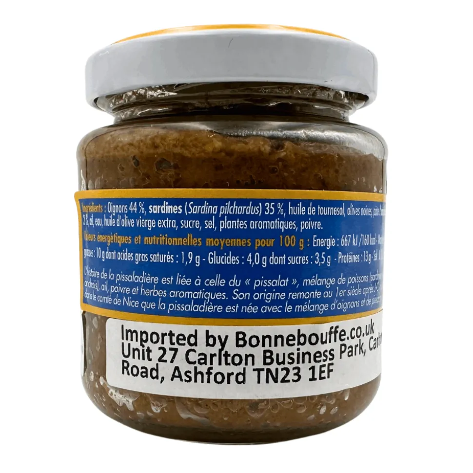 Ferrigno pissaladiere features sardines paired with a traditional “pissalat” mixture of onion and fish (sardines, and anchovies.) This product embodies the essence of a classic pissaladiere – a Provencal open tart resembling pizza, typically made with onions, anchovies, and black olives. Enjoy the flavours of this beloved dish conveniently packed, perfect for spreading on crusty bread or enjoying straight from the jar as an aperitif. This product can also be used for flavouring vol-au-vent or tartlets.