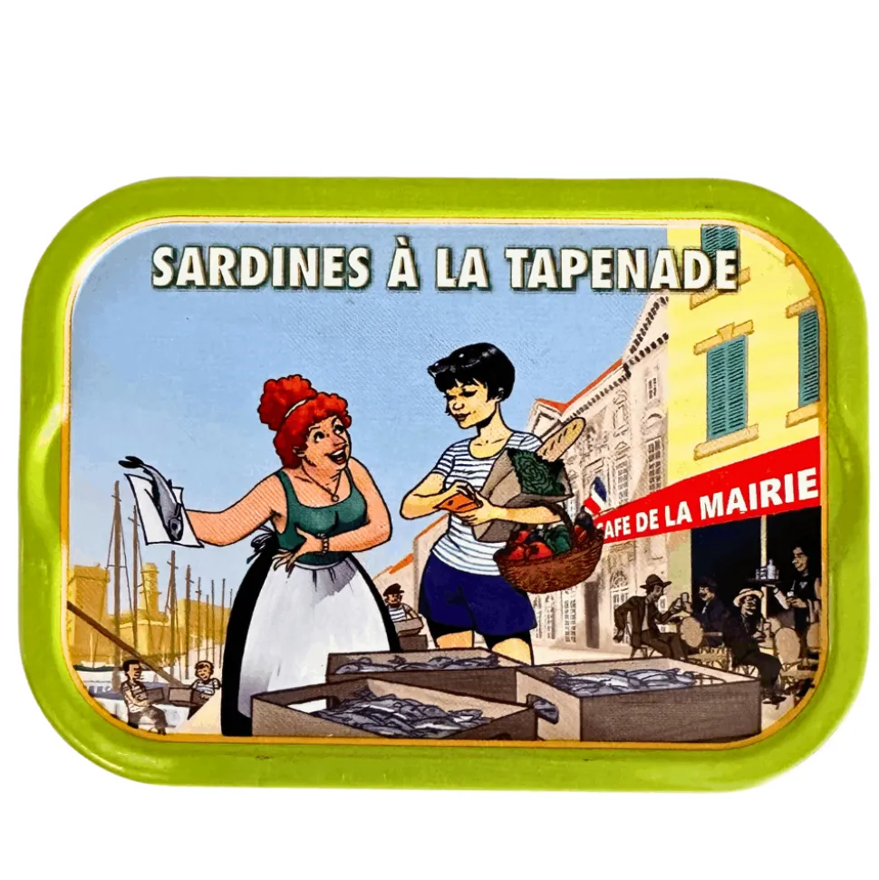 Ferrigno Sardines with Tapenade 115g: tinned sardines with a tapenade blend of black olives, anchovy, and capers.