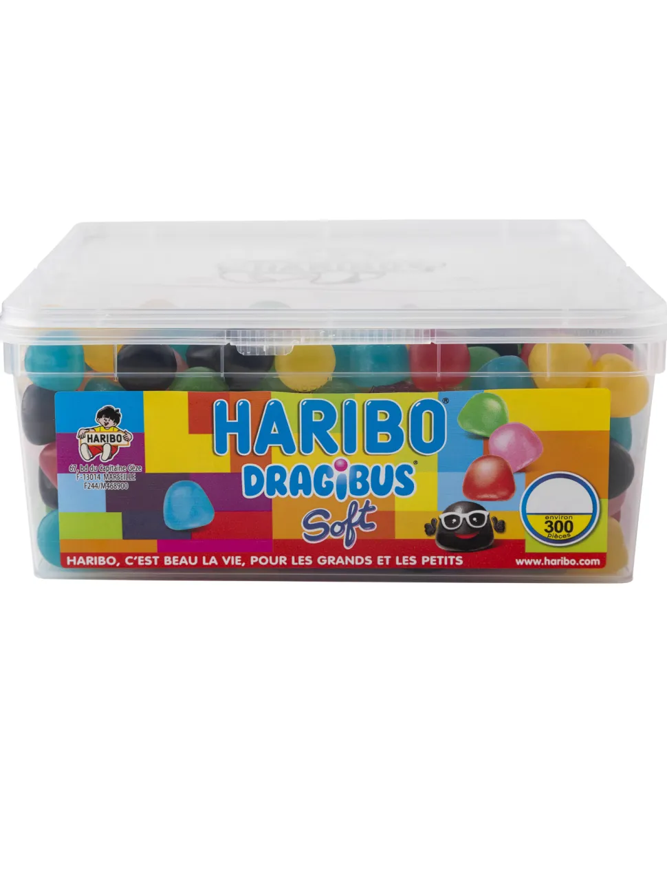 This large, re-sealable plastic tub, with roughly 300 sweets in it, is perfect for snack boxes, parties, buffets, and party favours. Vegan and vegetarian friendly.