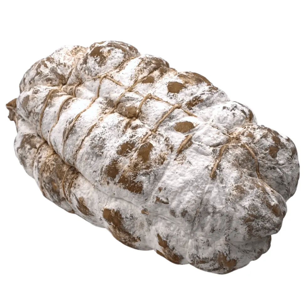 Jesus de Lyon is a coarse-textured, pear-shaped, dry-cured salami. It takes its name from the fact that it is a French speciality of Lyon cuisine originally prepared at the end of the year, to be ready to be eaten at Christmas to celebrate the birth of Jesus. It is best to store the saucisson wrapped in a cloth in a cool, dry place.