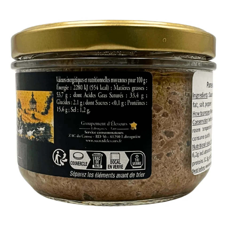 La Belle Chaurienne and Secret d’Eleveur, both renowned for its culinary expertise, presents a rustic texture that distinguishes these rillettes from traditional pâté. Rillettes are meticulously prepared by slow-cooking meat in fat until tender, then delicately shredded into small pieces before being blended with the warm cooking fat to create a truly rustic paste. Spread them on fresh bread and eat with pickles for a classic French treat. Secret d’Eleveur’s pure duck rillettes is made with 70% French duck meat, duck fat, salt, and pepper. La Belle Chaurienne’s authentic French rillettes is made with simple ingredients with no added preservatives.