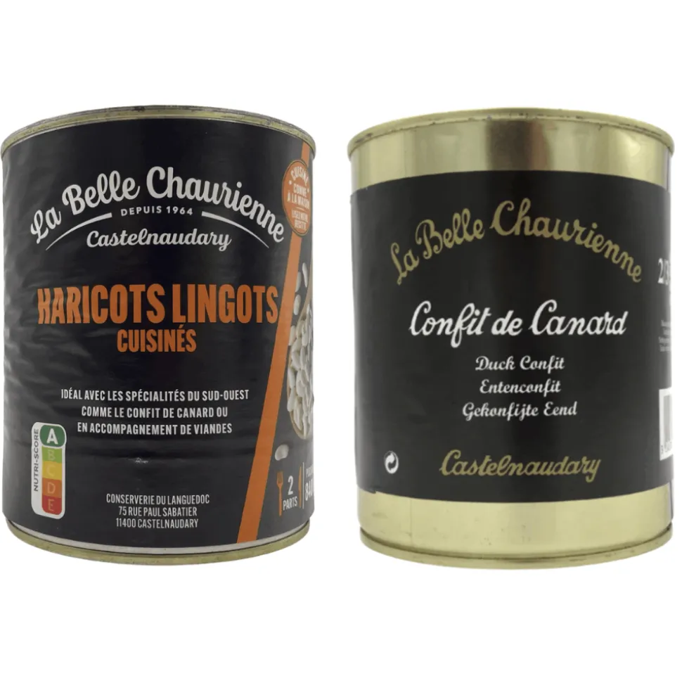 The 800g tin of La Belle Chaurienne confit duck will have 2/3 duck legs within and you can grill, bake or fry these until crisp. We also recommend using the extra duck fat to make roast potatoes, this French duck fat will really elevate the standard roastie! The 840g tin of tender lingot beans in a tomato-based sauce with goose fat will compliment the confit duck perfectly, but would also traditionally be served alongside Toulouse sausages too.