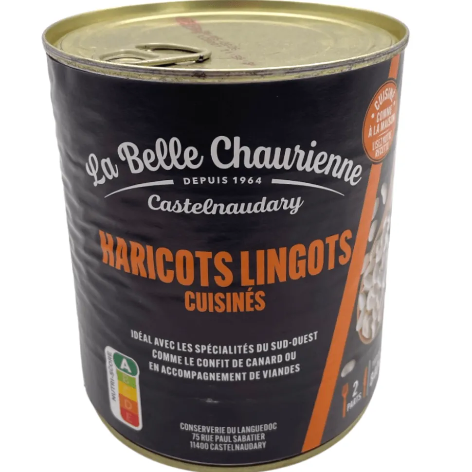 Large, 840g tin of lingot beans cooked in duck fat.