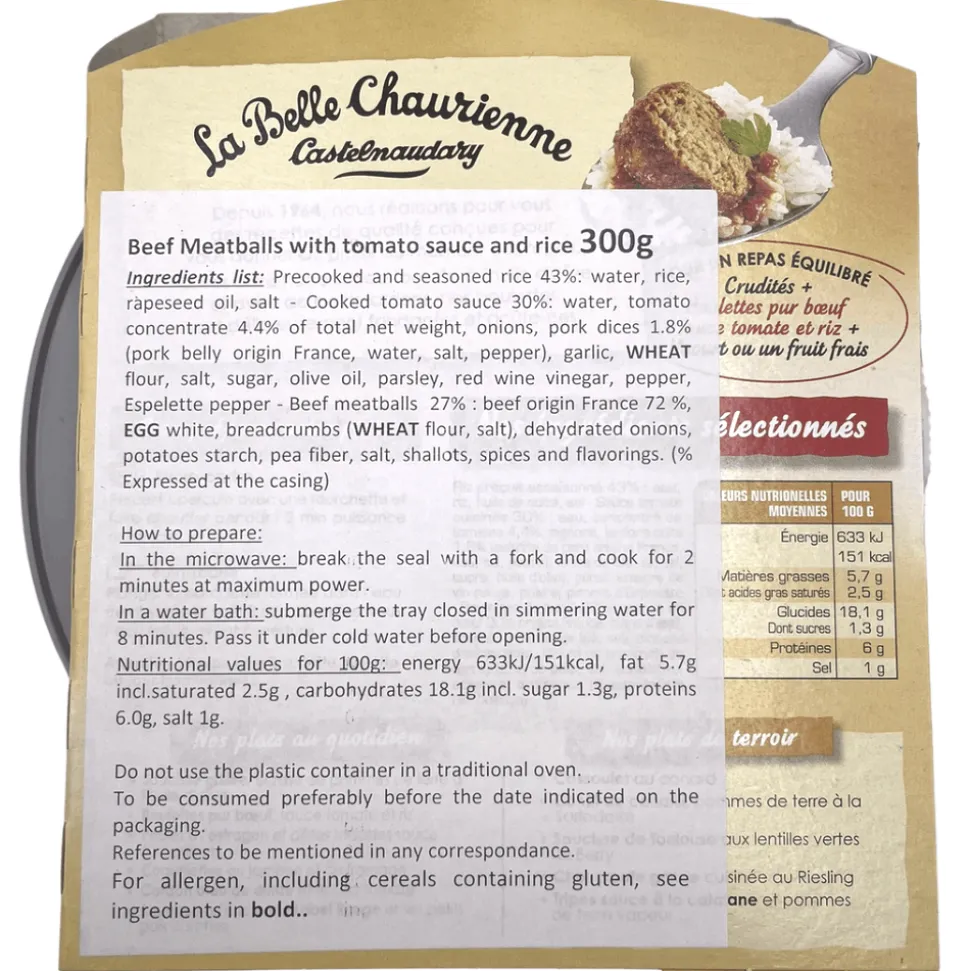 La Belle Chaurienne meatballs and tomato sauce with rice is a ready meal that showcase French cuisine.