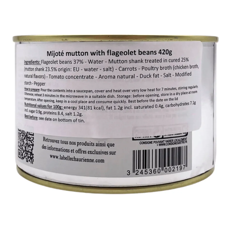 A traditional French meal brought to you by La Belle Chaurienne. This stewed mutton served with flageolet and carrots is a great ready meal for 1 person. It only takes few minutes to serve: simply reheat gently in a saucepan for 7 minutes, stirring regularly.