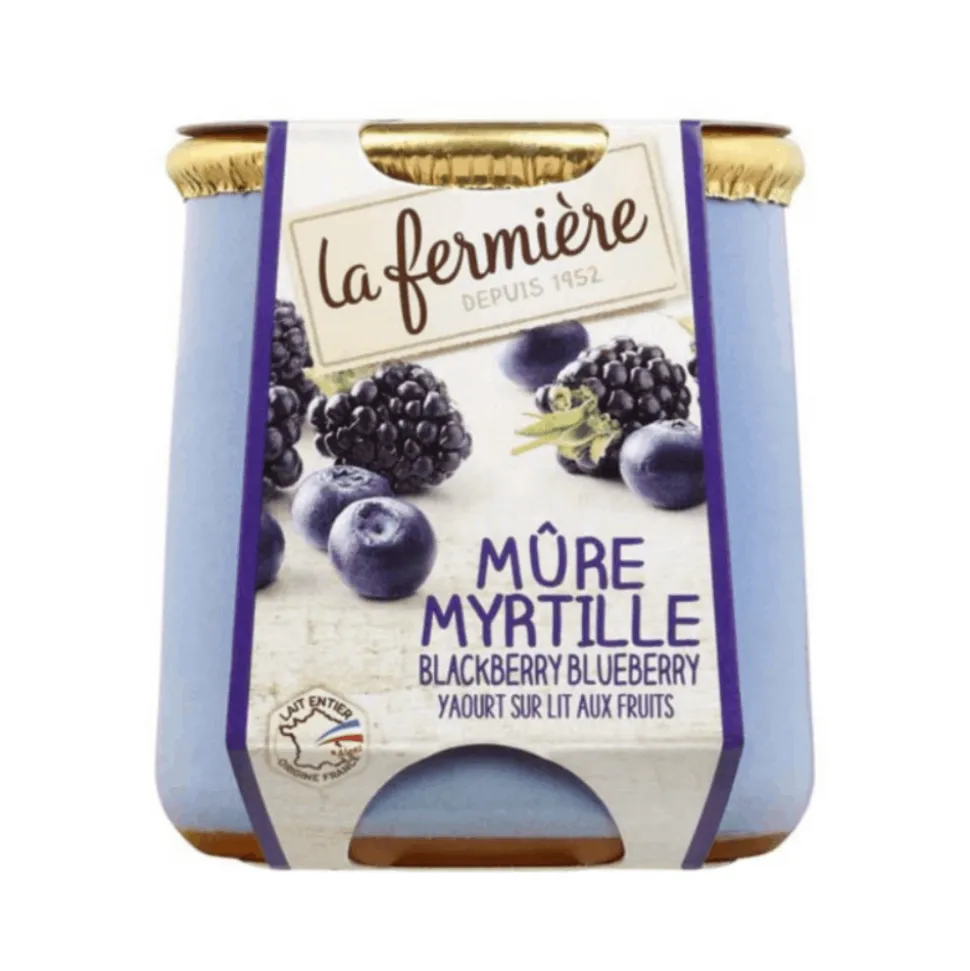 This delicious yogurt combines the taste of authentic French velvety creamy milk with a burst of sweetness from the flavour of blackberries and blueberries. La Fermière only sources milk locally from dairy farms in the Alps, ensuring exceptional quality of the yogurt, and making every spoonful a delight! Enjoy this delightfully fruity yoghurt, whether as a sweet treat or after dinner dessert.