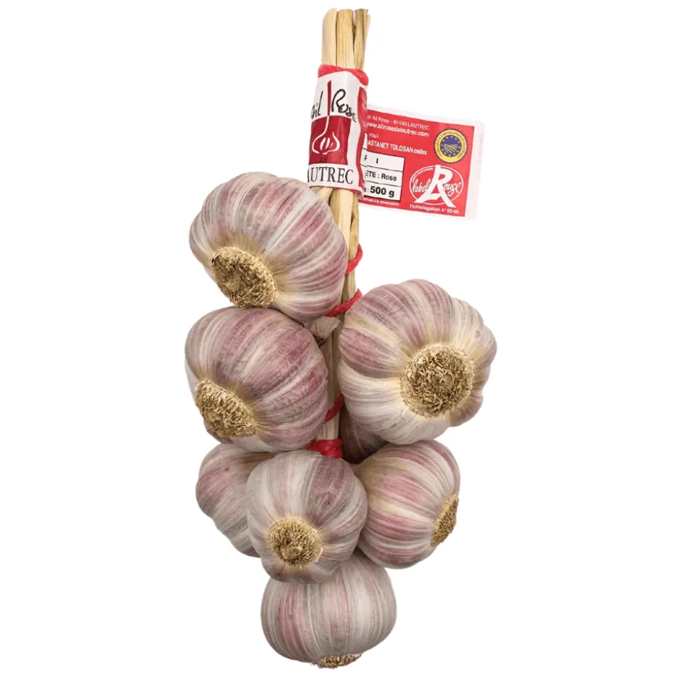 Lautrec pink garlic has the reputation of being one of the finest garlic in France. Grown and harvested in the south of France, this pink garlic is said to have been introduced to France in the Middle Ages. Pink Garlic Lautrec is a protected geographical indication indicating a specific garlic production from the Lautrec commune.