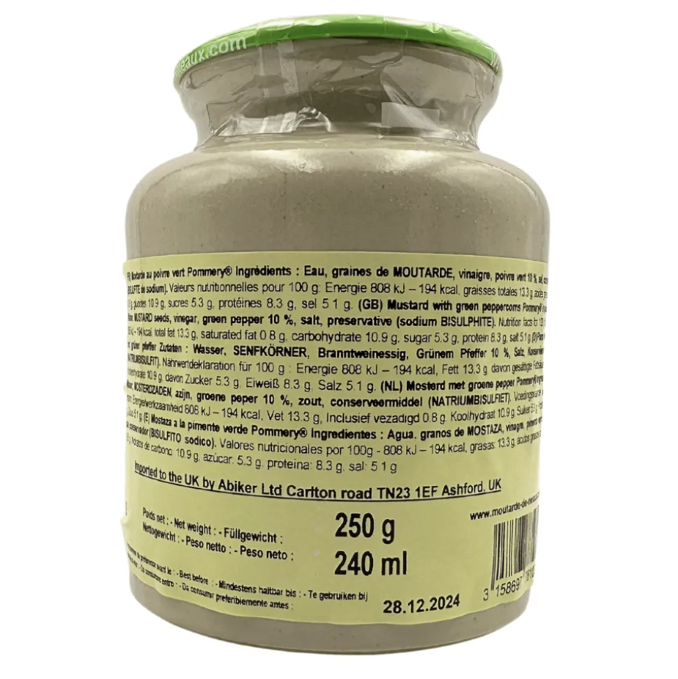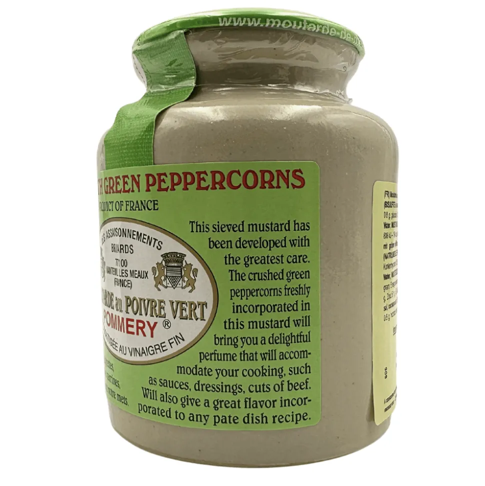 This green peppercorn mustard from Pommery is a fine mustard that has been filtered and enhanced with finely crushed green pepper from Madagascar.