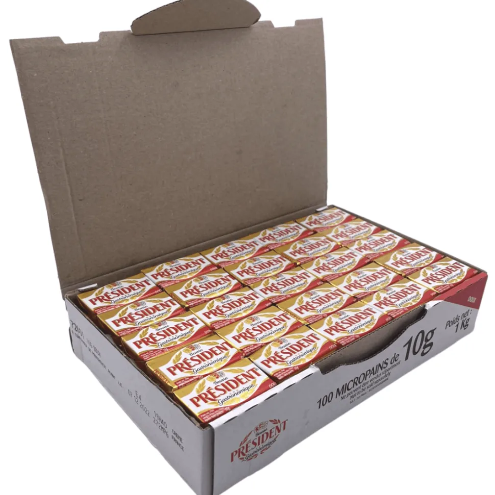 100 x 10g individually wrapped butter blocks. These French butter portions are suitable for freezing.