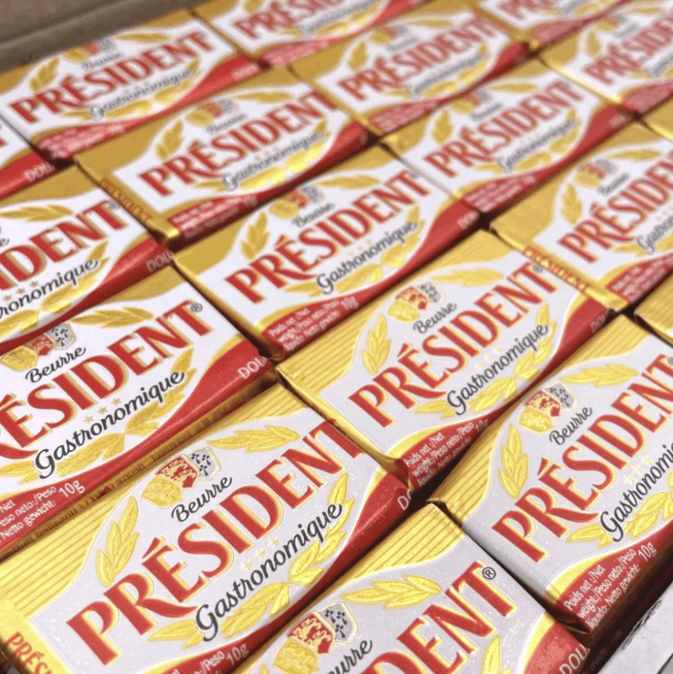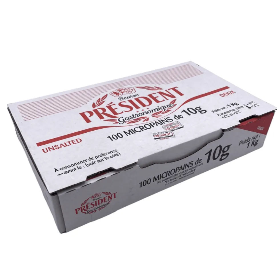Unsalted butter portions in a small single-serving size from President.