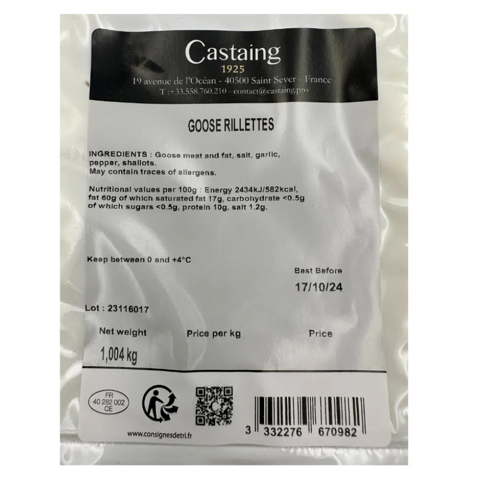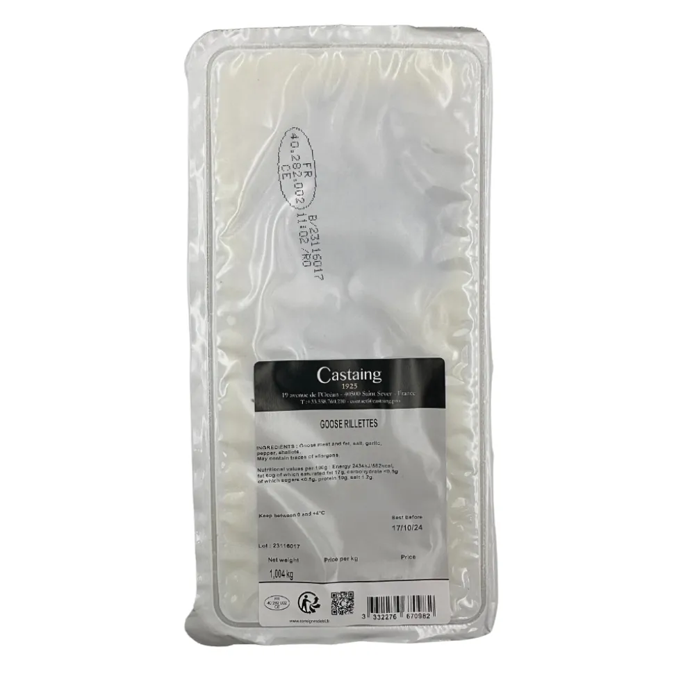 These rich, goose rillettes are made from goose meat enriched with goose fat, garlic, salt, pepper, and shallots and are free of preservatives. The ultimate easy but indulgent pleasure, they are made to a traditional recipe by French producer Castaing, who are famous for their duck and goose products.