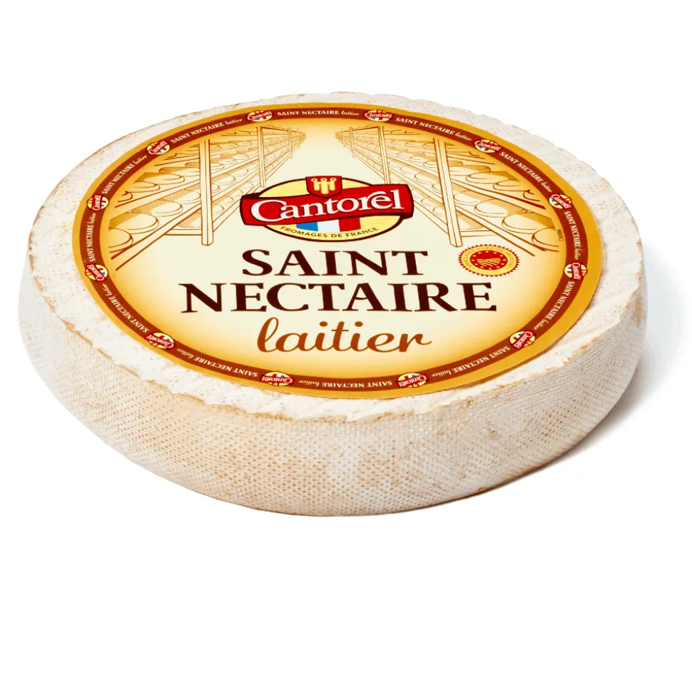 Saint Nectaire cheese, from the heart of Auvergne in France, is a gastronomic delight that marries tradition with exquisite flavour. Crafted from the finest cow’s milk, this semi-soft, washed rind cheese embodies the essence of its lush surroundings. Its creation involves a meticulous process, beginning with the gentle pasteurization of fresh, high-quality milk from native Salers and Montbéliarde cows. Traditional rennet initiates coagulation, and the resulting curds are carefully hand-cut and moulded before a brine bath enhances the rind’s formation.