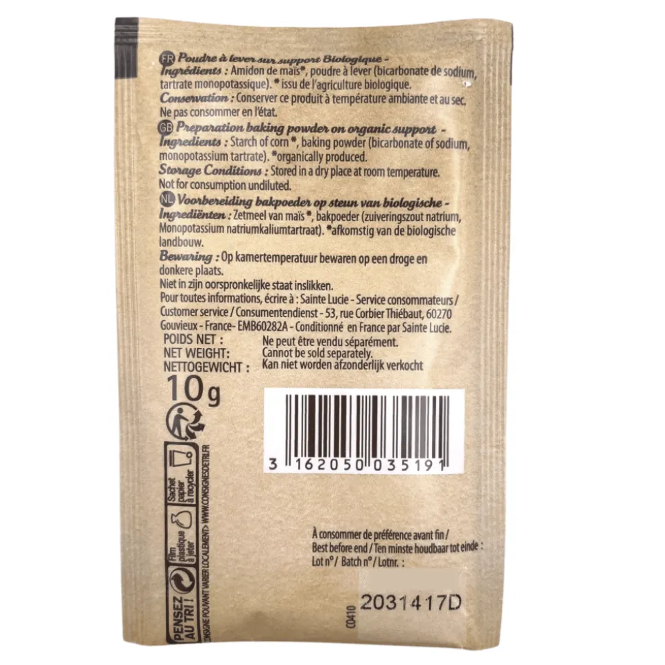 Baking powder made in France by Sainte Lucie, five sachets of 10g.