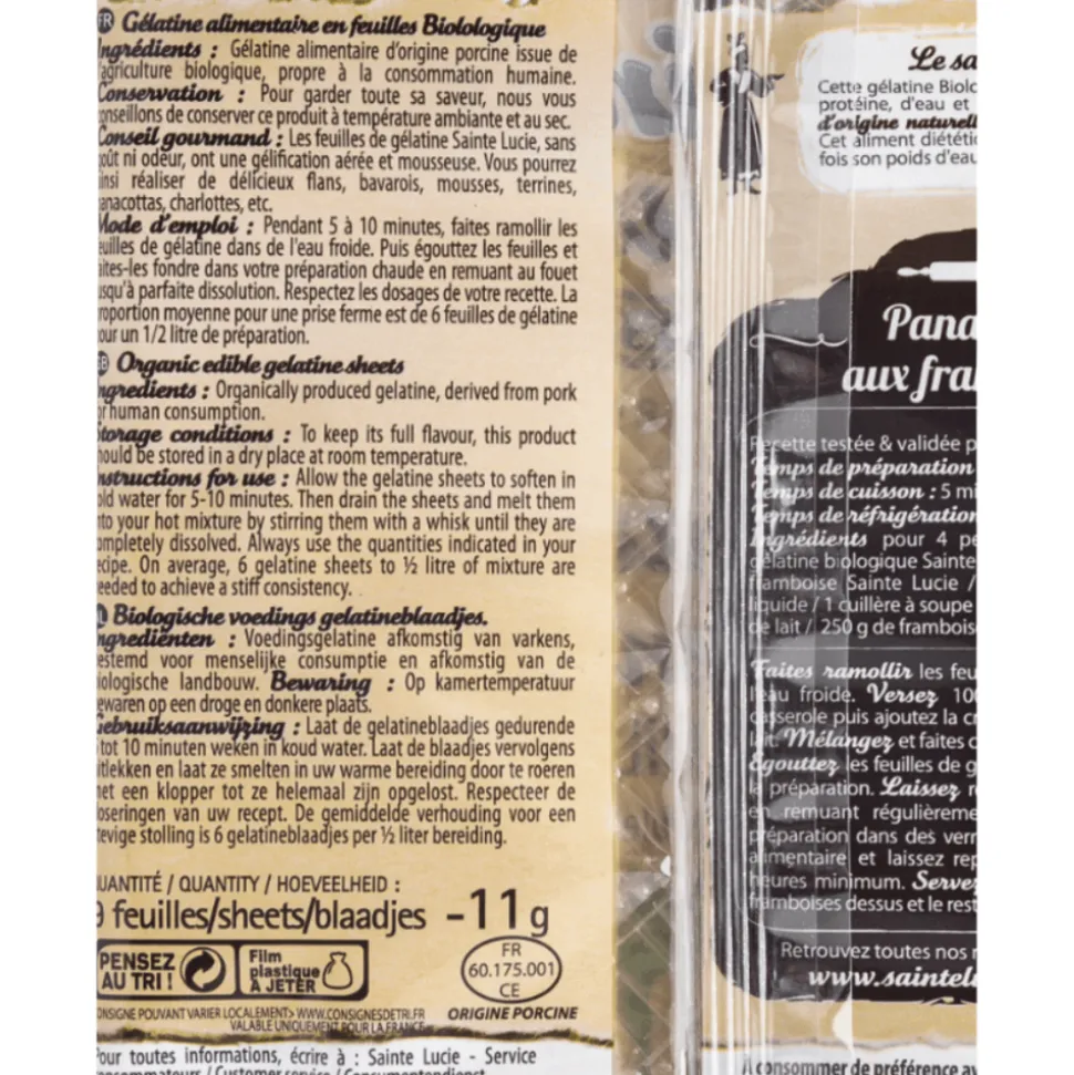 Gelatine leaves from French company Sainte Lucie, 11g in total.