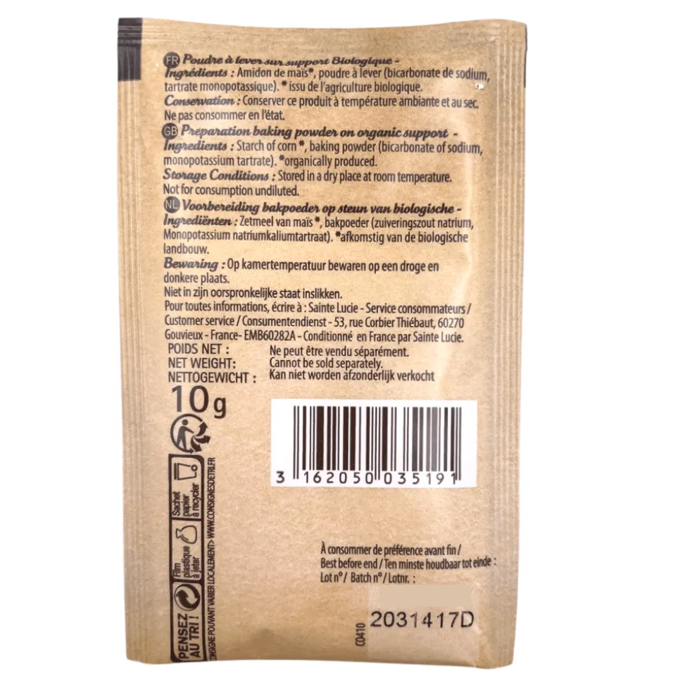 Starch of corn, baking powder (bicarbonate of sodium, monopotassium tartrate).