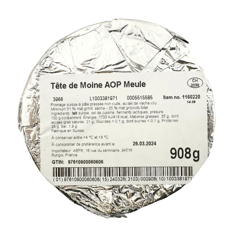 Tete de Moine cheese, approximately 850g (+/- 10%).